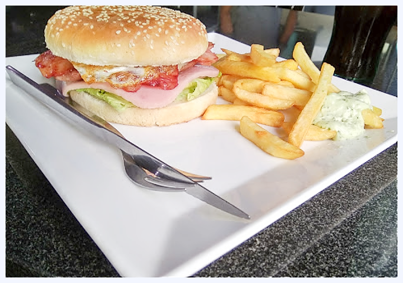 (Pan Brioche con 200 gr de carme vacuno, bacon tostado, cebulla caramelizada, ensalada, huevo, queso chedart)